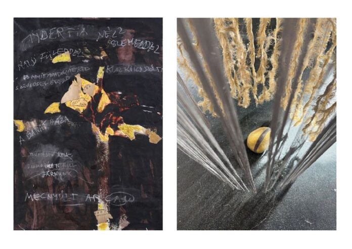 Die von Krisztián Kukla kuratierte Ausstellung erkennt sich darin wieder: Der, der die Quelle sehen will, trifft schließlich auf die Dunkelheit. Klimós Malerei und Pöhns textile Arbeiten begegnen sich in dieser Wendung – dort, wo das Werk zugleich entsteht und vergeht.