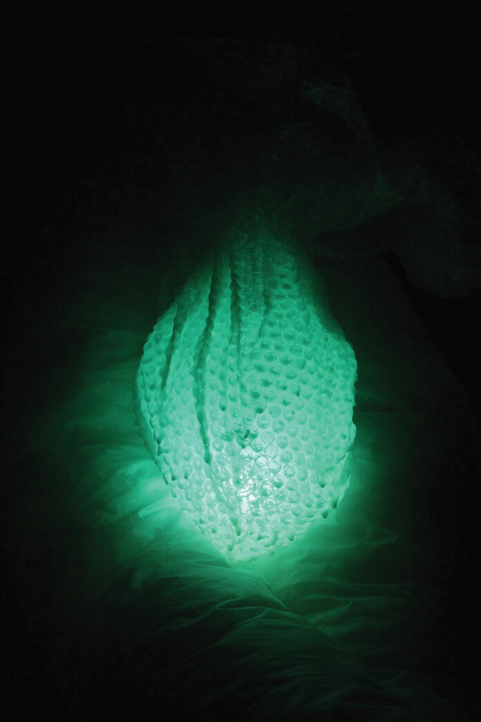 Rauchenbichlers Inspiration entspringt dem Bienenstock, einem Ort, an dem kollektive Arbeit, Fragilität und Architektur ineinandergreifen. Wachs, mit seiner Fähigkeit sowohl zu halten als auch nachzugeben, wird zu ihrem primären skulpturalen Material. Die von ihr geschaffenen Objekte sind dünnhäutig; auf ihren Oberflächen sammeln sich Bilder, teils opake, teils durchscheinende malerische Gesten.