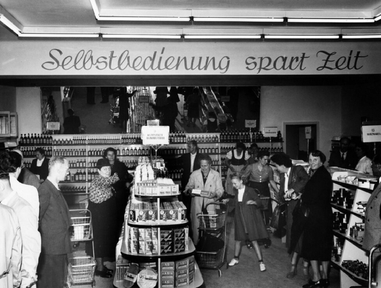 Die Linzer Konsumgenossenschaft eröffnet den ersten Supermarkt Österreichs in Linz, Wienerstraße, 1950, Archiv der Stadt Linz