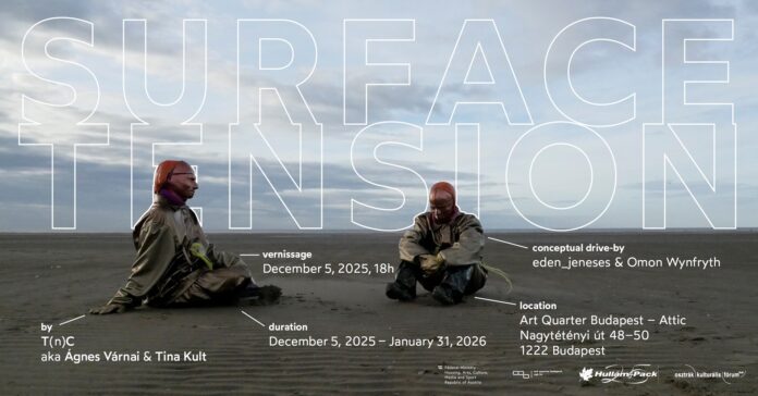 In ‘Surface Tension,’ the Austro-Hungarian artist duo T(n)C – Ágnes Várnai & Tina Kult – brings together a constellation of interconnected multimedia works created over the past four years. T(n)C experiments with a variety of media, including virtual reality, 3D, installation, sculpture and film. By combining different disciplines, the artist duo explores immersive experiences to connect the digital and physical planes of reality.