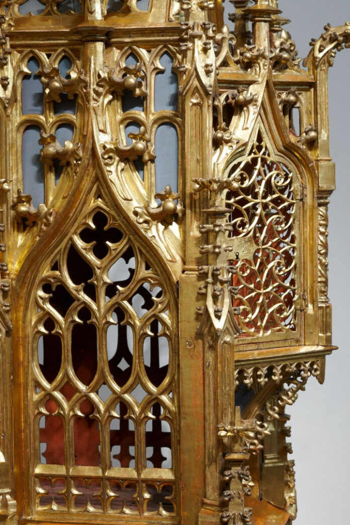 The ‘Sculpture and Plastic Arts’ collection at the Salzburg Museum houses a shrine which, given its classification as ‘furniture’, might also be expected to feature in the decorative arts collection. The “reliquary” from the Bürgerspitalskirche in Salzburg – sometimes also referred to as the “Holy Sepulchre” – is one of the most significant examples of late Gothic furniture in Salzburg, owing to its exceptionally high-quality, elaborate and precious craftsmanship, the rich gilded carvings and the figurative reliefs.